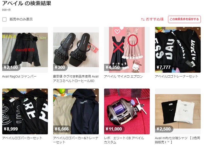例えばラクマでは「アベイル」で検索したら、下のように出品されています。