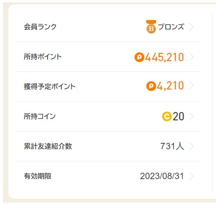 1000円ポイント獲得で150円も貰える訳ですから、15%のボーナスはかなりデカイですよね。 ランクを上げる事で稼ぎやすさがグンとUPするので、ランクUPを目指してお小遣い稼ぎをしていきましょう♪