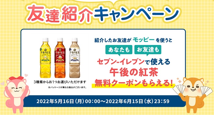 お小遣いサイト「モッピー」は「お友達紹介キャンペーン」が常時開催されています。